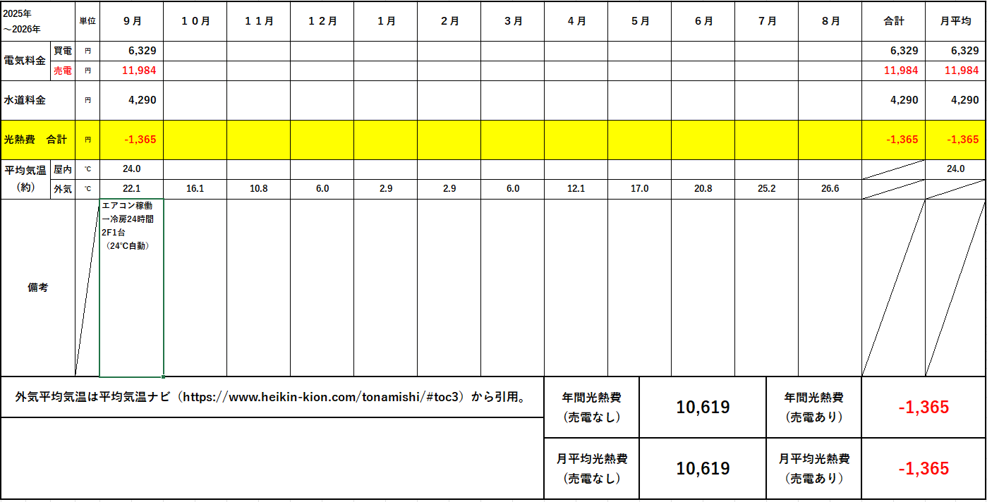 Ua値0.26(5地域での断熱等級7)の光熱費実績