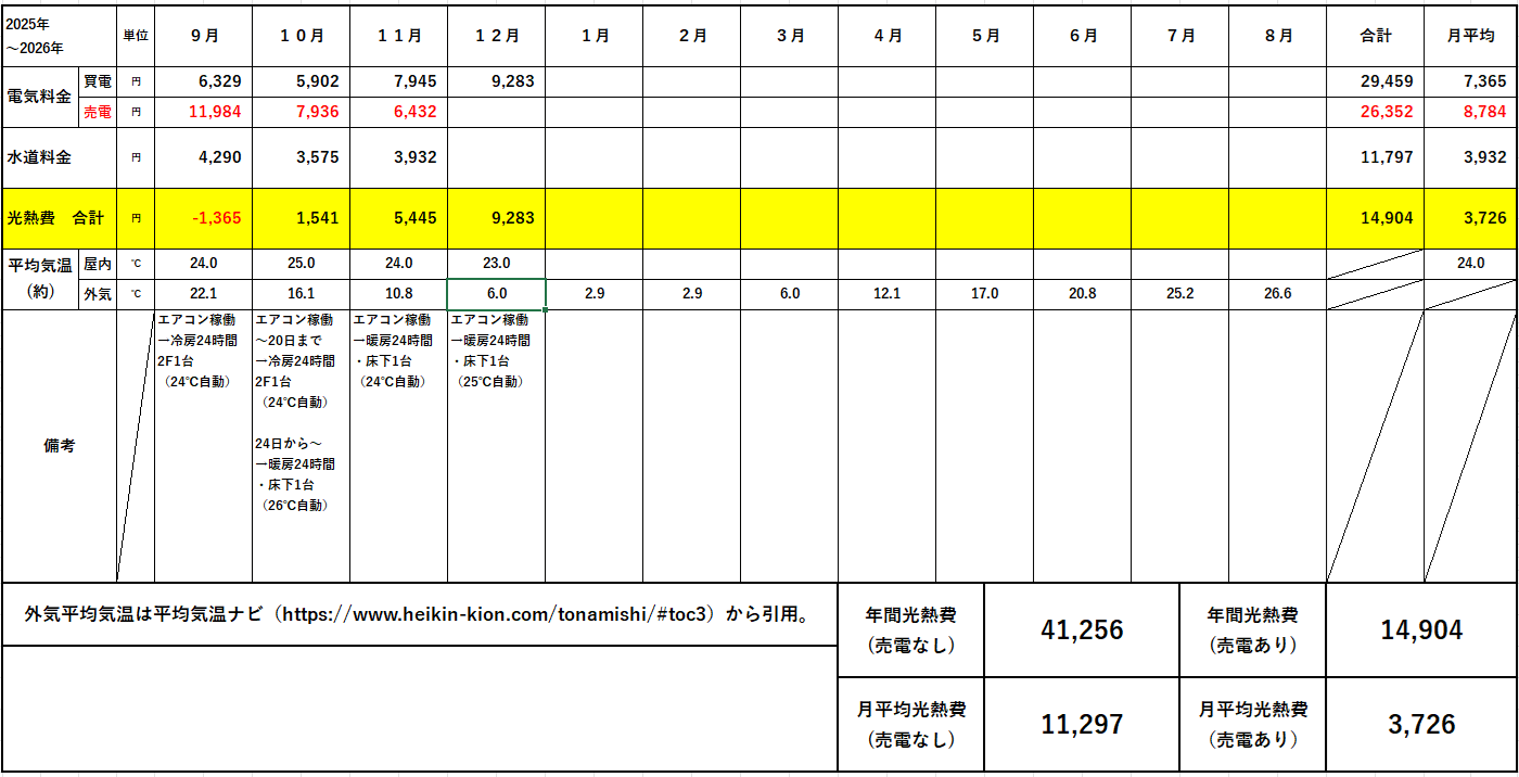 Ua値0.26(5地域での断熱等級7)の光熱費実績
